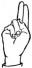 На ћирилици написано РАДАШИН АЦАМОВИЋ састоји се из 15 слова [?]. Исписано ћириличном једноручном азбуком за глувонеме: